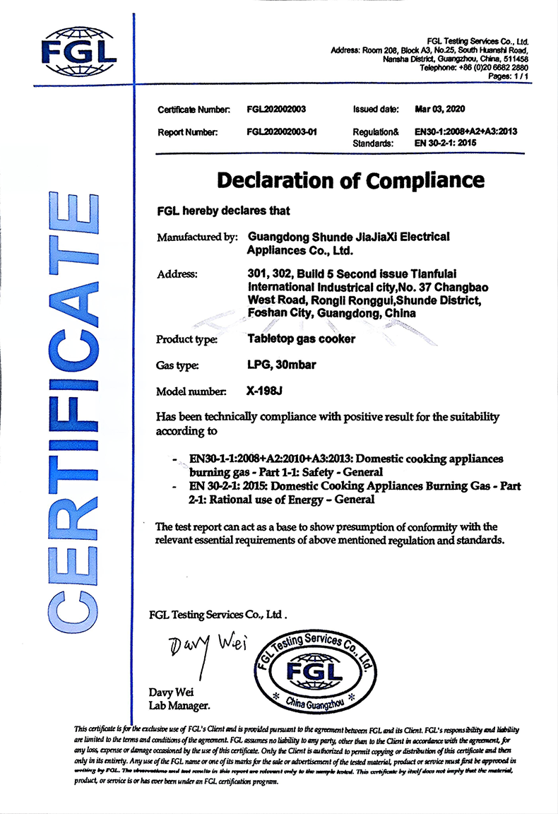Giấy chứng nhận FGL