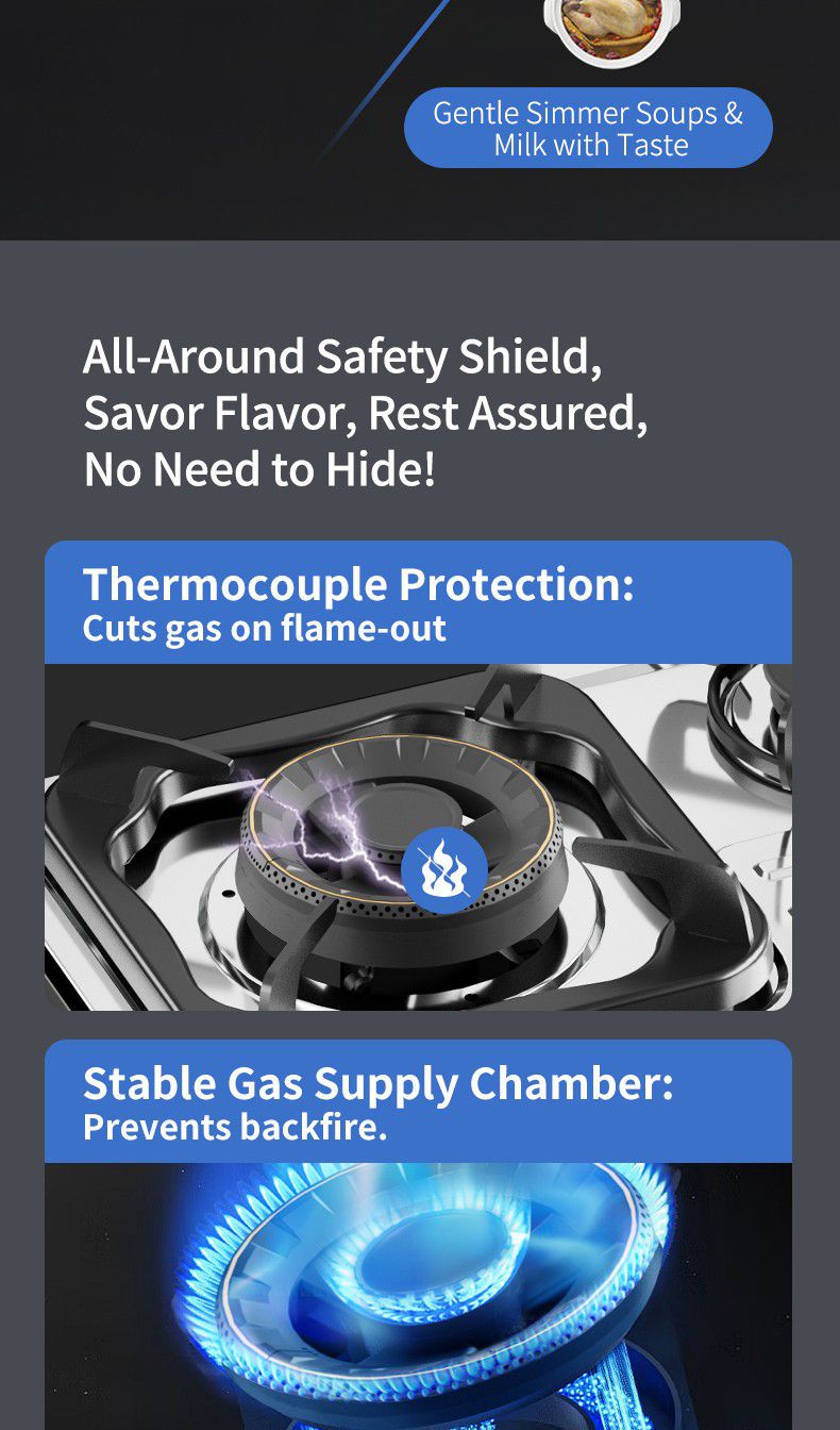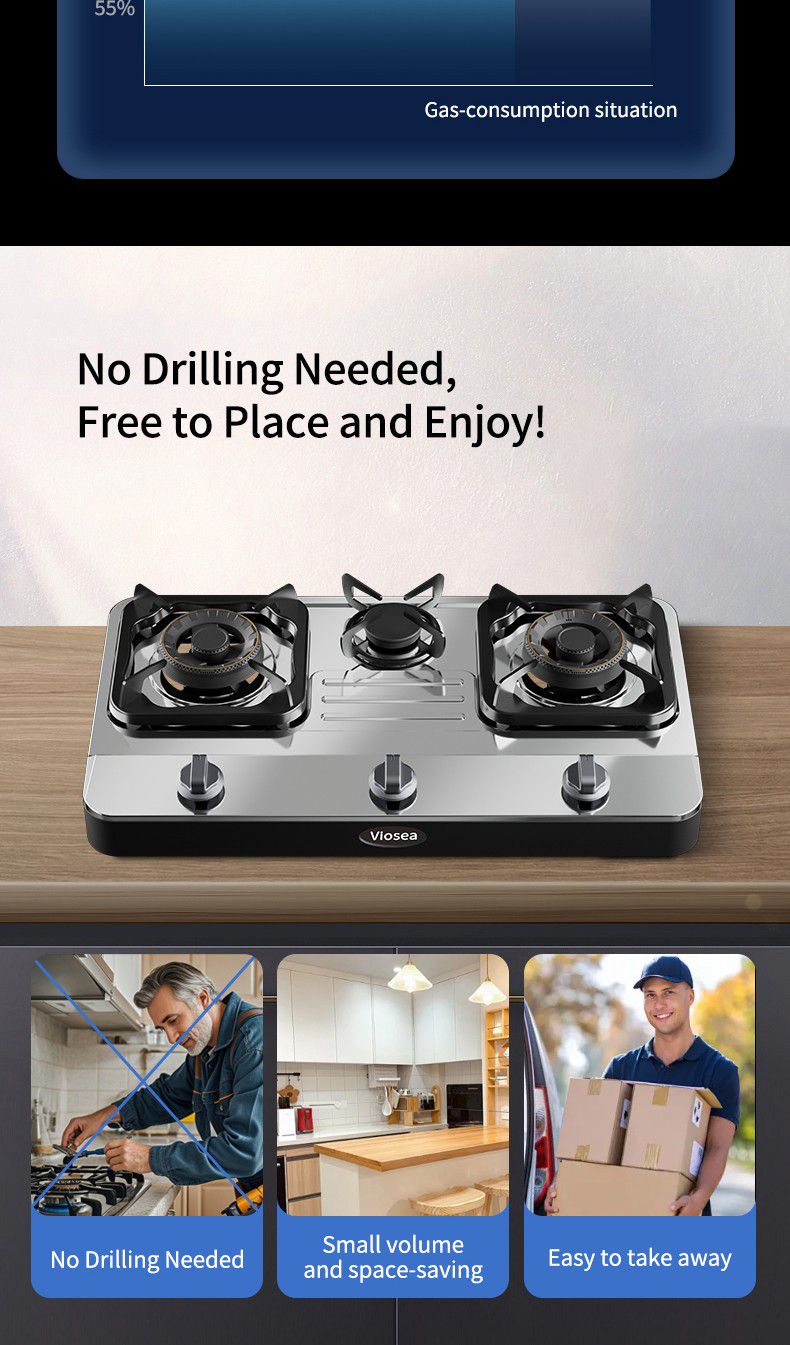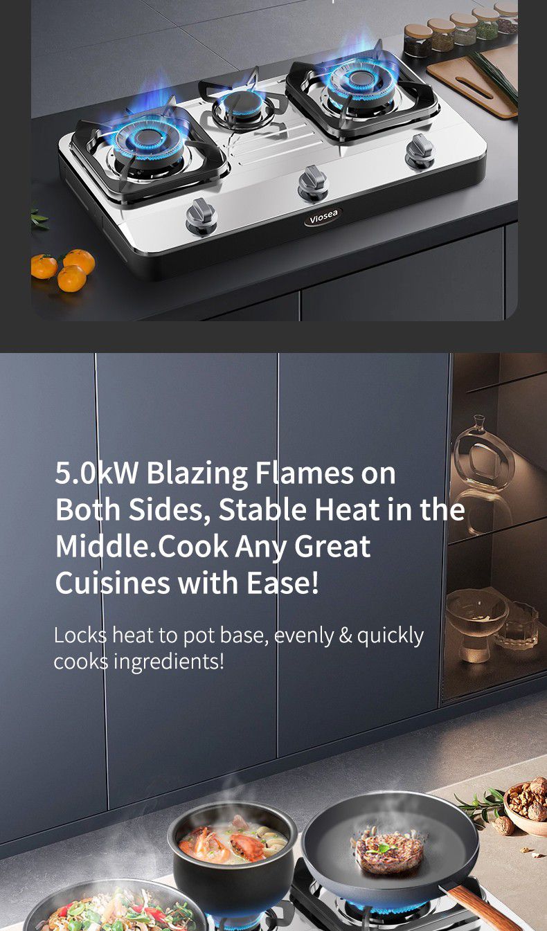 Đối với bữa ăn gia đình, bếp gas 3 đầu đốt tỏa sáng: nấu nhiều món cùng một lúc (nước sốt, rau, cơm) với nhiệt THẬM CHÍ tiết kiệm thời gian cho những người làm cỏ bận rộn.